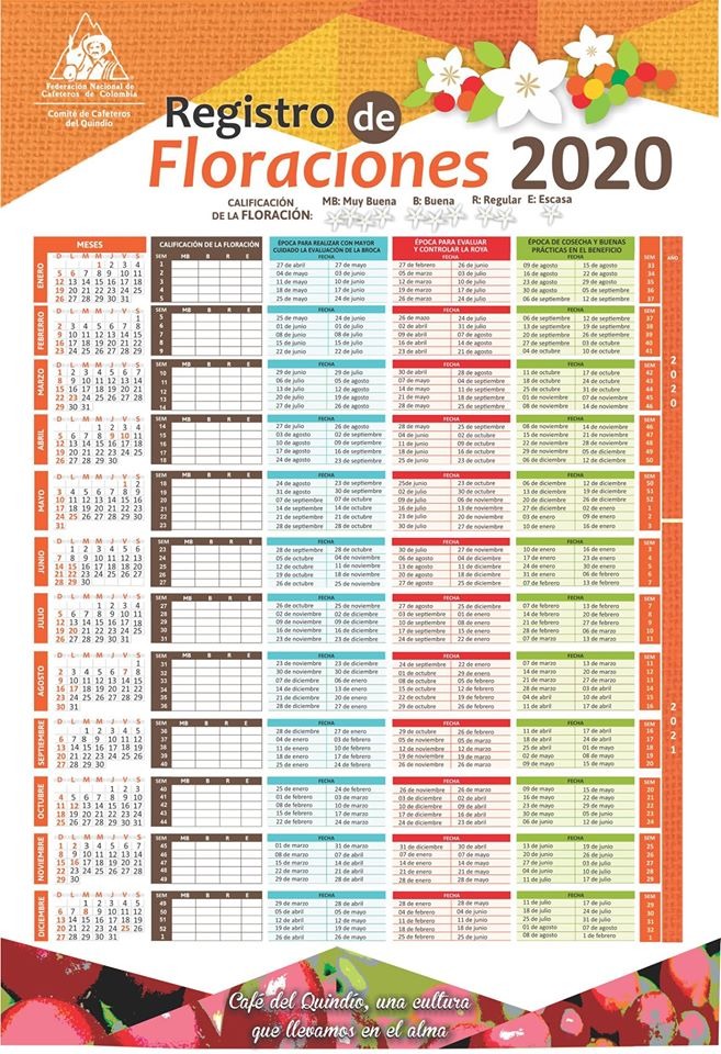 | | Uno de los factores clave para el control de roya y broca es el monitorio y cuantificación oportuna de las floraciones principales en cada finca, ya que permite ajustar el inicio de las aplicaciones de agroquímicos, si se evidencia la necesidad, de forma oportuna y mas precisa para cada predio. |